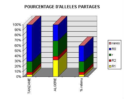 Exemple : Si la population tanzanienne a 20 % d'allèle `r' pour le "gène Rhésus"et la population algérienne 30 %, le pourcentage commun est 20%