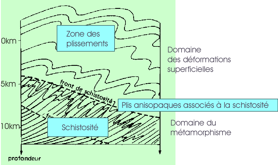 Ce diagramme permet de repérer les grands domaines de déformations géométriques, il permet d'associer à un type de déformation, une profondeur. (donc une pression)