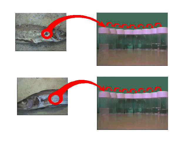 sort les deux harengs. Afin de comparer leur état, on les dissèque