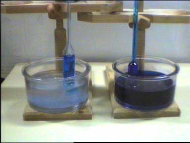Nous plaçons de leau douce que nous avons préalablement colorée en bleu dans un appareil de Dutrochet . Nous plaçons le bas de celui-ci au contact de leau salée dont nous avons rempli le bassin qui est en dessous (fig.1).