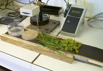 La manoeuvre la plus simple consiste à placer sur le fond noir sous le radiomètre successivement de l'eau, du sable, des aiguilles de pin, de l'herbe fraîchement coupée, etc. On mesure alors la valeur radiométrique de façon analogique en % et non de 0 à 255 par valeurs entières (numérisation sur 8 bits avec un convertisseur analogique/numérique ou C.A.N.)