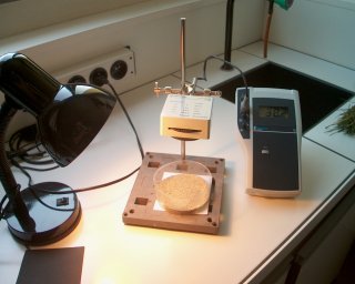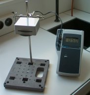 | En réalisant un petit montage avec des glissières de tiroir on peut aussi "faire défiler" ce paysage modèle sous le radiomètre et mesurer les valeurs à la volée. Cette solution est préférable à celle qui consiste à déplacer le radiomètre car elle assure une bien meilleure constance de l'éclairement. | ![]() |